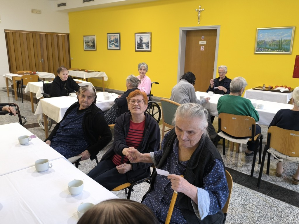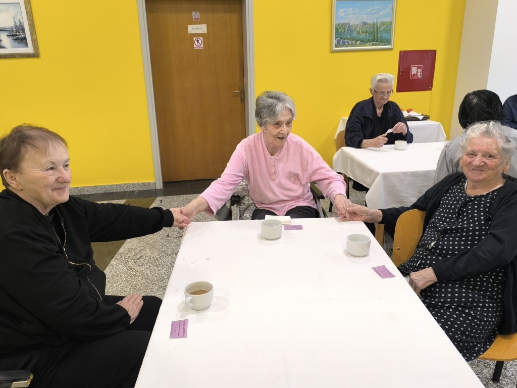 U Domu smo obilježili Međunarodni dan zagrljaja druženjem uz kavu, čaj i kolače. Razgovarali smo o važnosti iskazivanja ljubavi i privrženosti, kako riječima, tako i djelima. Svi smo se složili da zagrljaj i topla riječ ne iziskuju puno truda, a mnogo znače. Korisnicima je pročitana pjesma Zagrljaj našeg poznatog pjesnika Dragutina Tadijanovića. Podijeljeni su im i kuponi za zagrljaje koje su odmah iskoristili te pružili ruke jedni drugima. Na samom kraju smo svi skupa zapjevali. Nadamo se da ćete slijediti naš primjer i svaki se dan sjetiti koliko je važno dati bližnjima do znanja da ih volimo, bilo zagrljajem, toplim pogledom ili riječima. Sretan vam svima Međunarodni dan zagrljaja uz stihove našeg poznatog pjesnika!